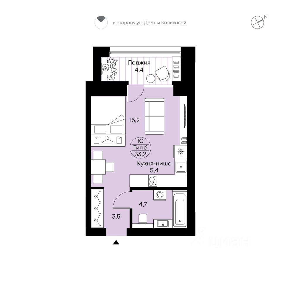 Квартира от застройщика в приватном одноподъездном кирпичном доме. Подходит под семейную и льготные ипотеки. Ключи — не позже III кв. 2027 г. Прямая сделка с застройщиком — гарантия безопасности. Студия свободной планировки с кухней-нишей, французским выходом на лоджию, местом для системы хранения, совмещенным с/у. Вид в сторону ул. Д.Каликовой. Предусмотрена установка кондиционера на лоджии. На площадке всего 4-5 квартир. Подъезд на уровне земли, светопрозрачная входная группа, гостеприимный холл с колясочной. Два скоростных грузопассажирских лифта. Тихий, безопасный двор с закрытой территорией, системой видеонаблюдения, ландшафтным дизайном, игровым и спортивным оборудованием. Парковка за пределами двора. Толстые и тёплые кирпичные стены (740 мм — с двумя слоями утеплителя). Улучшенная звукоизоляция благодаря несущим стенам, примыкающим к широким коридорам. Высота потолков — 2,8 м. Окна и лоджии с низкими подоконниками (60 см от пола) и энергоэффективным остеклением. К квартире подведены все коммуникации. Установлены качественные толстые (80 мм) металлические двери, современные радиаторы, автоматическая передача показателей со счётчиков. Домофония и мобильное приложение жителя. Низкие коммунальные платежи благодаря классу энергоэффективности А+. ИНФРАСТРУКТУРА В радиусе километра есть всё: супермаркеты, аптеки, заведения и учреждения сферы услуг, детские сады, школы, спортклубы. ПОКУПКА Персональный специалист по недвижимости в любом из офисов продаж СКАТа бесплатно сопроводит всю сделку: - проконсультирует и забронирует понравившуюся вам квартиру; - поможет подобрать ипотечную программу и оформить заявку в банк; - поможет решить вопросы с использованием маткапитала и других субсидий; - регистрация недвижимости в соответствии с 214 ФЗ.