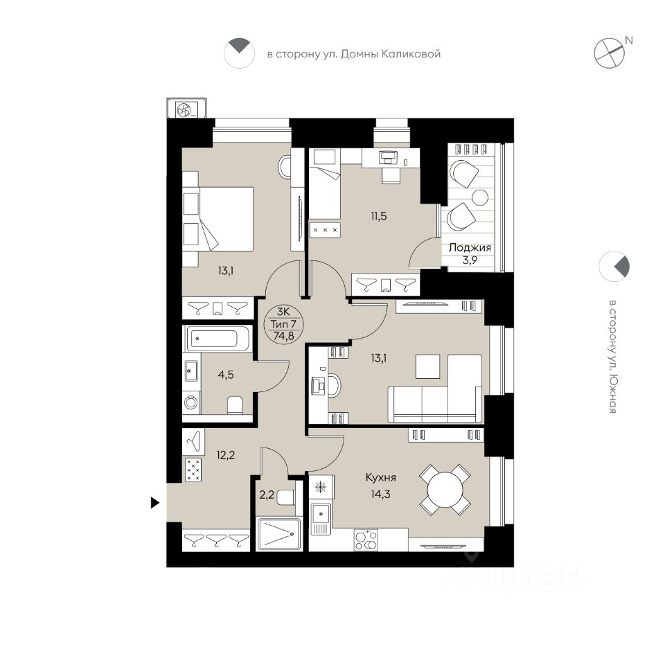Квартира от застройщика в приватном одноподъездном кирпичном доме. Подходит под семейную и льготные ипотеки. Ключи — не позже III кв. 2027 г. Прямая сделка с застройщиком — гарантия безопасности. Классическая угловая трёхкомнатная квартира свободной планировки. Отдельная кухня, гостиная, две спальни, одна из которых с выходом на лоджию, два санузла, места для систем хранения. Вид в сторону ул. Д.Каликовой и ул. Южной. Предусмотрен экран для кондиционера. На площадке всего 4-5 квартир. Подъезд на уровне земли, светопрозрачная входная группа, гостеприимный холл с колясочной. Два скоростных грузопассажирских лифта. Тихий, безопасный двор с закрытой территорией, системой видеонаблюдения, ландшафтным дизайном, игровым и спортивным оборудованием. Парковка за пределами двора. Толстые и тёплые кирпичные стены (740 мм — с двумя слоями утеплителя). Улучшенная звукоизоляция благодаря несущим стенам, примыкающим к широким коридорам. Высота потолков — 2,8 м. Окна и лоджии с низкими подоконниками (60 см от пола) и энергоэффективным остеклением. К квартире подведены все коммуникации. Установлены качественные толстые (80 мм) металлические двери, современные радиаторы, автоматическая передача показателей со счётчиков. Домофония и мобильное приложение жителя. Низкие коммунальные платежи благодаря классу энергоэффективности А+. ИНФРАСТРУКТУРА В радиусе километра есть всё: супермаркеты, аптеки, заведения и учреждения сферы услуг, детские сады, школы, спортклубы. ПОКУПКА Персональный специалист по недвижимости в любом из офисов продаж СКАТа бесплатно сопроводит всю сделку: - проконсультирует и забронирует понравившуюся вам квартиру; - поможет подобрать ипотечную программу и оформить заявку в банк; - поможет решить вопросы с использованием маткапитала и других субсидий; - регистрация недвижимости в соответствии с 214 ФЗ.