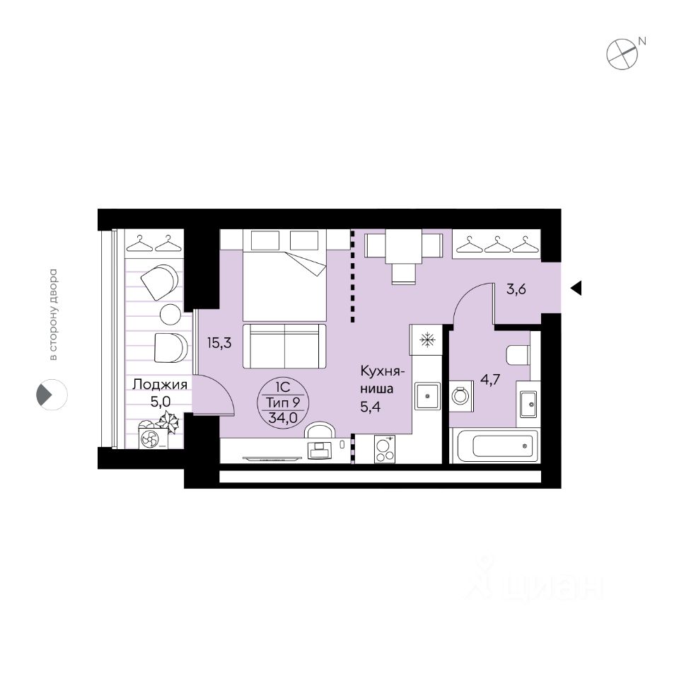 Общая площадь34 м²