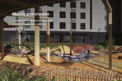 Секция из 14-ти этажей, до 8 квартир на площадке. Верхний этаж — хайфлэты — квартиры с увеличенными до трёх метров потолками. Подъезд на уровне земли, светопрозрачная входная группа, гостеприимный холл с колясочной. Два скоростных лифта. Тихий, безопасный двор с закрытой территорией, системой видеонаблюдения, ландшафтным дизайном, игровым и спортивным оборудованием. Парковка за пределами двора.