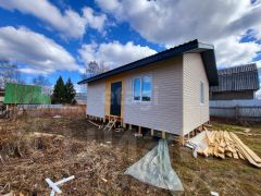 Построен из СИП панелей, фундамент - винтовые сваи.