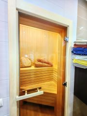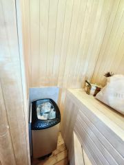 На втором этаже находятся три уютные комнаты, каждая из которых оборудована просторными кроватями и местом для хранения ваших вещей. Здесь же вы найдете современный совмещенный душ с туалетом и расслабляющую сауну, где можно забыть о повседневной суете.