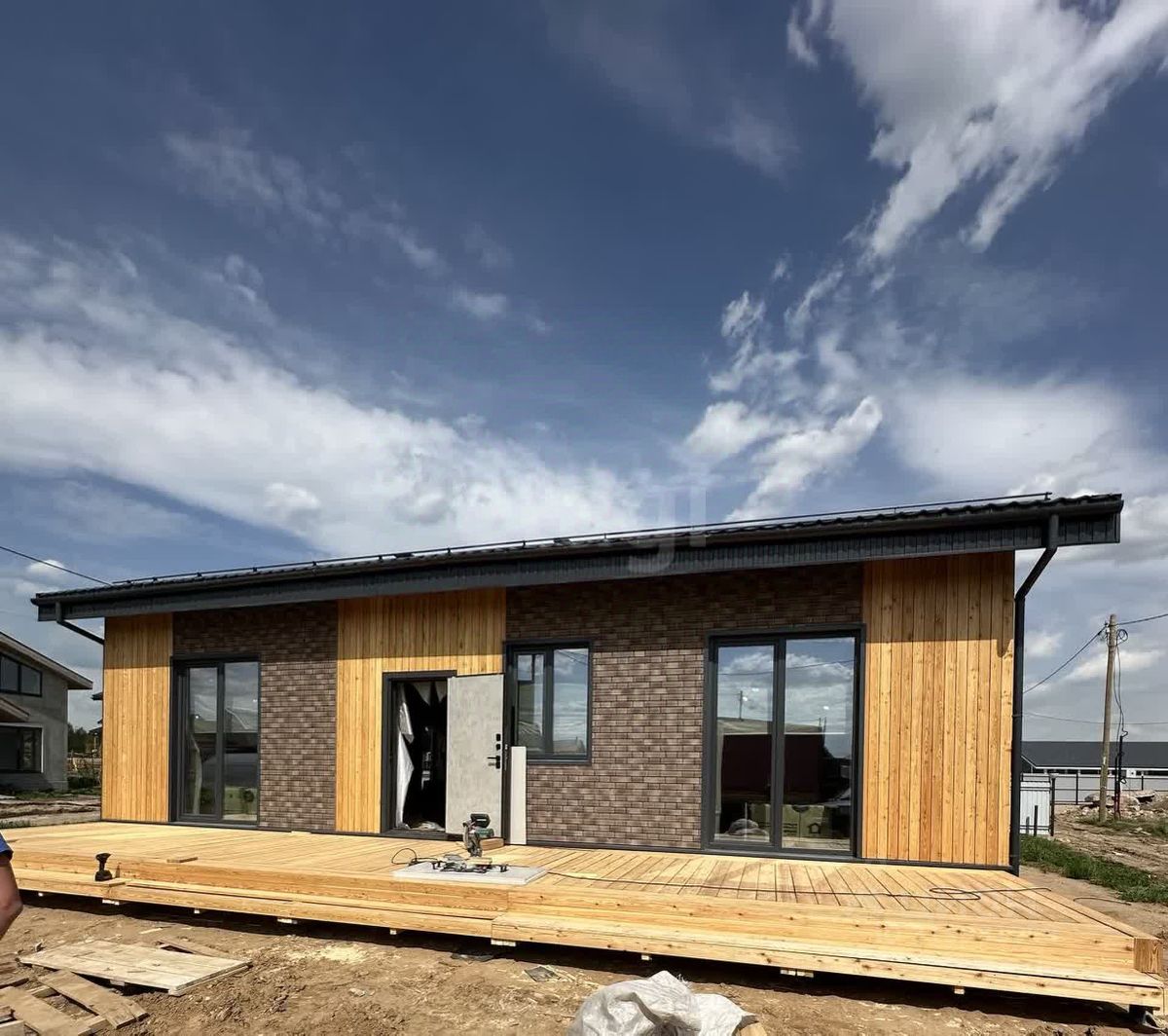 ПОДХОДИТ ПОД СЕМЕЙНУЮ ИПОТЕКУ. Продам одноэтажный дом в Выльгорте общей площадью 120 кв. м. на участке 7,5 соток. Дом построен из ЛСТК (лёгкой стальной тонкостенной конструкции). Участок расположен вблизи дороги, недалеко от улицы Сретенская и Совхозная. В планах подключение электричества (15 кВт), а также о становлен столб ЛЭП на границе участка согласно заключенному договору с электросетями. Возможно подключение газа (проходит по улице). Участок является собственностью и имеет ровную, сухую поверхность, расположенную на возвышенности. Материал стен - ЛСТК, профиль 200 мм, с утепленным контуром в 250 мм. Крыша выполнена из металлочерепицы с утепленным контуром в 300 мм, установлена водосточная система и снегозадержатели. Фундамент представляет собой утепленную железобетонную плиту. Внешняя отделка- комбинированный сайдинг с деревянной доской из лиственницы( пропитана маслом). По проекту предусмотрены 3 комнаты, кухня-гостиная, санузел и котельная, внутри свободная планировка. В доме будет произведен монтаж вентиляционной системы. Расположенная на участке канализация будет осуществляться с помощью септика объемом 2,5 м3. Окна в доме 5-камерные с поляризованными стеклопакетами повышенного класса энергосбережения. Отопление предусмотрено с использованием теплого пола согласно проекту. Звоните, записывайтесь на просмотр.