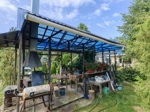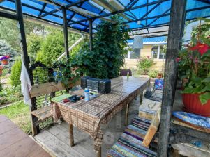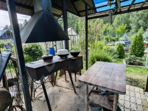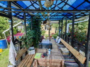 Есть колодец, скважина, баня, сарай, теплица с автополивом, гостевая комната, капитальная и большая беседка с зоной барбекю и различными приспособлениями. Всё крепкое и добротное.