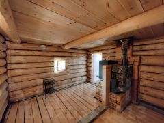Баня из качественной сосновой древесины построена на ленточном фундаменте. В бане есть теплый предбанник и просторная веранда — идеальное место отдыха после парной процедуры. Обустроена система слива воды.