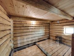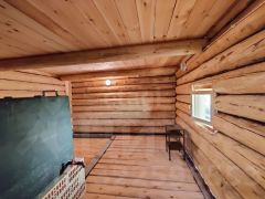 Баня из качественной сосновой древесины построена на ленточном фундаменте. В бане есть теплый предбанник и просторная веранда — идеальное место отдыха после парной процедуры. Обустроена система слива воды.