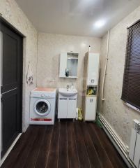 Современный дом из бруса 2017 года постройки расположен в тихом и удобном районе всего в 7 минутах езды от центра города в м Дырнос. Двухэтажная планировка общей площадью 98,5 кв. м обеспечивает комфортное пространство для жизни: на первом этаже расположена кухня-гостиная, санузел и спальня, на втором — две спальни. Фундамент на винтовых сваях гарантирует надежность конструкции, а наличие дополнительных свай позволяет легко реализовать планируемую пристройку. Система отопления: электрический и твердотопливный котел, совсем скоро будет проведен газ. Централизованное водоснабжение организовано от колодца с подведением воды в дом, водоотведение — через накопительную яму. Территория участка полностью огорожена профнастилом. На участке имеется новая баня, сарай с погребом и дровяником, зона отдыха с мангалом, детская площадка. Так же имеются плодовые кустарники, небольшой огород. Высокая транспортная доступность и близость к городским услугам сочетаются здесь с преимуществами загородной жизни.