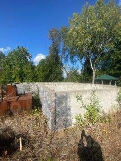 • Участок с видом на реку, есть фундамент под строительство дома. Фундамент сделан так, что это полноценный цокольный этаж, где можно разместить хоз блок (постирочная, гардеробная, кладовая), плюс сделана яма для хранения овощей.