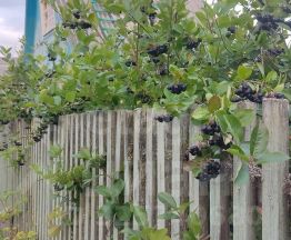 Земля уже приносит практическую пользу — здесь плодоносят кусты смородины, крыжовника, черноплодной рябины и грядки с клубникой, отведены места под зелень и картофель.