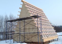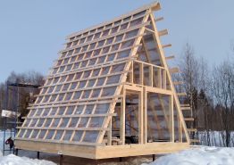На участке располагается недостроенный дом- шалаш, материалы для крыши идут в подарок, дом по задумке будет иметь 2 этажа, панорамное остекление на 2 этажах