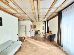 Планировка: большая терраса размером 102 метра, просторная гостиная-кухня, уютная спальня и детская комната. Благодаря грамотно спланированному расположению окон свет проникает в помещения равномерно, обеспечивая комфортное проживание независимо от сезона.