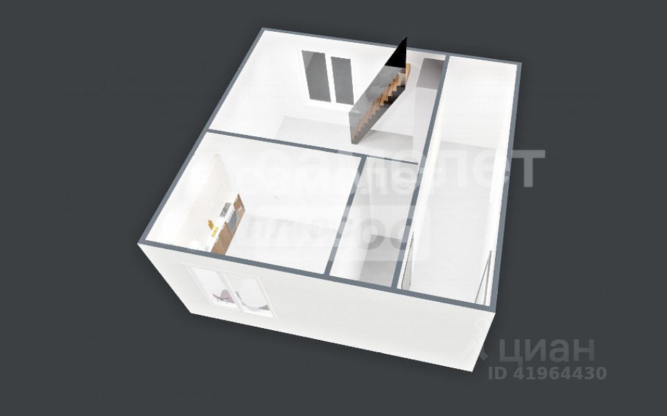 На первом этаже тамбур, кухня и комната.