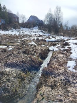 По центру участка протекает ручей. Это естественная особенность земли, вы можете увидеть её на фото и при личном осмотре участка. Дом планировался в стороне от ручья. ( Огромный + для тех, кто мечтает о своём доме с зоной отдыха, есть возможность создать пруд или альпийскую горку)