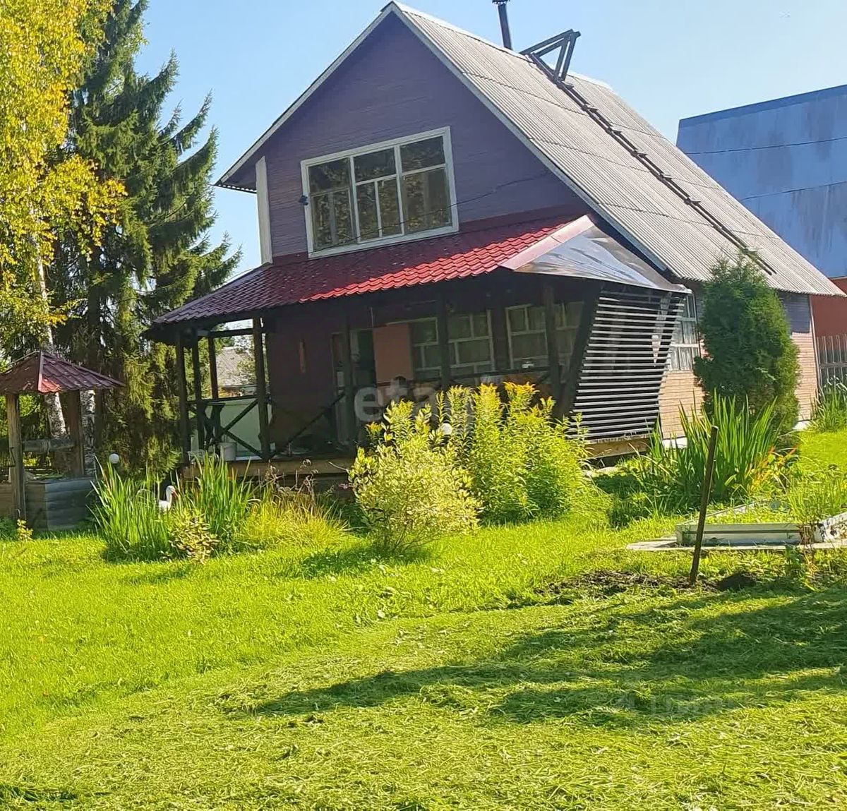 — Участок 15 соток. Так же растут много плодово-ягодных кустов и деревьев, многолетних цветов: ирга, черноплодная рябина, крыжовник, смородина и яблоня, туя.