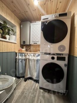 Баня находится в доме, она же используется как моечная. Стоит душ, вода подается из нагревателя, чтоб мыться — не обязательно топить баню, что летом чрезвычайно удобно.