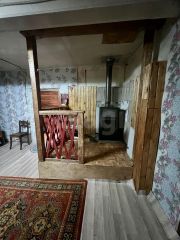 Дом состоит из двух комнат и оборудован печным отоплением. Планировка позволяет расширить жилое пространство за счет пристройки веранды и дополнительной комнаты — сваи под будущую конструкцию уже подготовлены.