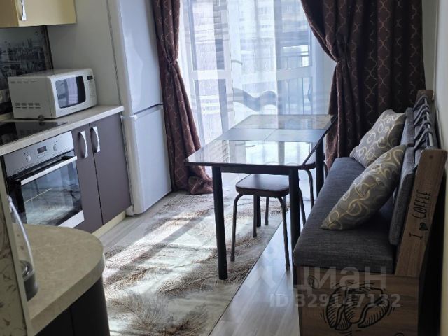 Квартира в новом доме. Общая площадь 32 квадратных метра + лоджия (6 кв.м.) Свежий ремонт, никто не жил. Квартира будет сдаваться с мебелью и бытовой техникой (на фото пока нет мебели, но всё на днях привезут). Будет необходимая мебель и техника: кухонный гарнитур, холодильник, шкаф, диван, стиральная машина и т.д. Отдельная просторная кухня с выходом на лоджию, комната, совмещенный санузел. Арендная плата + комунальные платежи.