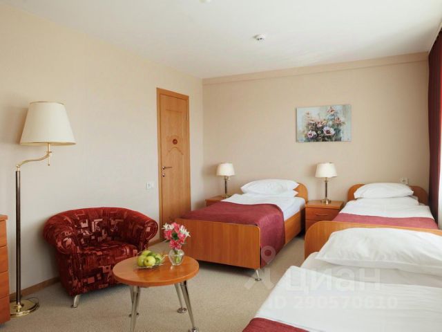 В номере: кровать (размер 0,9*2 м), телевизор, телефон, холодильник, лоджия, чайник, чайная пара, тарелка, ложка чайная, нож консервный, щетка для одежды, губка для обуви, рожок для обуви, фумигатор с таблеткой (в летний период), санузел.