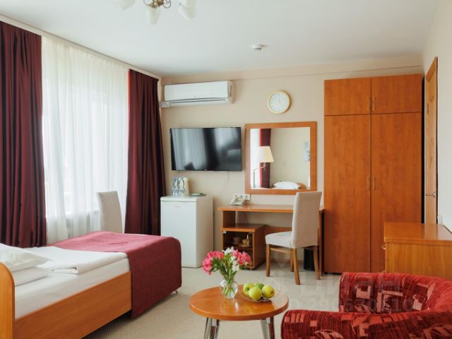 Официально присвоена категория "Две звезды". Некоторые виды услуг и оформления пространств соответствуют большему количеству звёзд. Номерной фонд гостиницы состоит из 158 номеров и предлагает самый широкий выбор от категории "Стандарт" до просторных люксов и апартаментов. Современные номера со всеми удобствами, завтрак "шведский стол", Wi-Fi и выход на балкон в каждом номере!