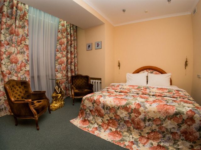 Однокомнатный номер площадь 18 кв. м. В номере: двуспальная кровать (от 1,2*2 м), прикроватные тумбочки, письменный стол, стулья, кресло, шкаф для одежды, светильники, доступ в интернет (Wi-Fi, бесплатный), телевизор, сейф, телефон, мини-холодильник, электрический чайник, посуда, вода, чай, кофе, сахар, балкон. В ванной комнате находится классическая ванна и санузел, есть фен, раковина, зеркало, предоставляются наборы полотенец и туалетные принадлежности.