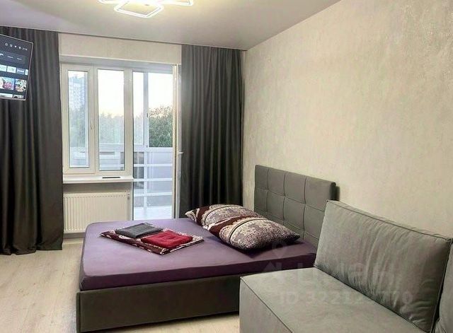 Уютная квартира студия в центре города. Жилой комплекс "Графика". 2 лифта, своя дворовая территория под шлагбаумом, видеонаблюдение, детские и спортивные площадки. В квартире качественный ремонт, двуспальная кровать, кабельное ТВ, микроволновая печь, чайник, посуда, холодильник. Из квартиры открывается прекрасный панорамный вид, можно наблюдать за самолетами. В шаговой доступности магазины, ТРЦ "Рублик", центральный стадион, бассейн, больничный городок, отделения банков.