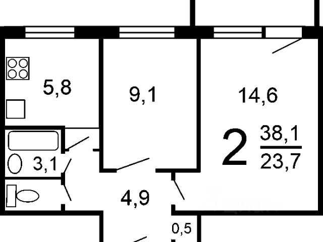 - общая площадь 23,1 кв.м + большая остекленная лоджия (6 кв.м);